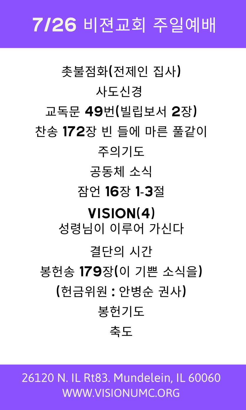 7월 4주 페이지 정보 작성자 VisionChurch 댓글 0건 조회 2,647회 작성일 20-08-08 12:49 목록 본문 7월 26알 첨부파일 7 26 2020.pdf (1.2M) 1회 다운로드 | DATE : 2020-08-08 12:49:54 이전글8월 1주 20.08.08 다음글7월 3주 20.08.08 댓글 0 댓글목록 등록된 댓글이 없습니다.