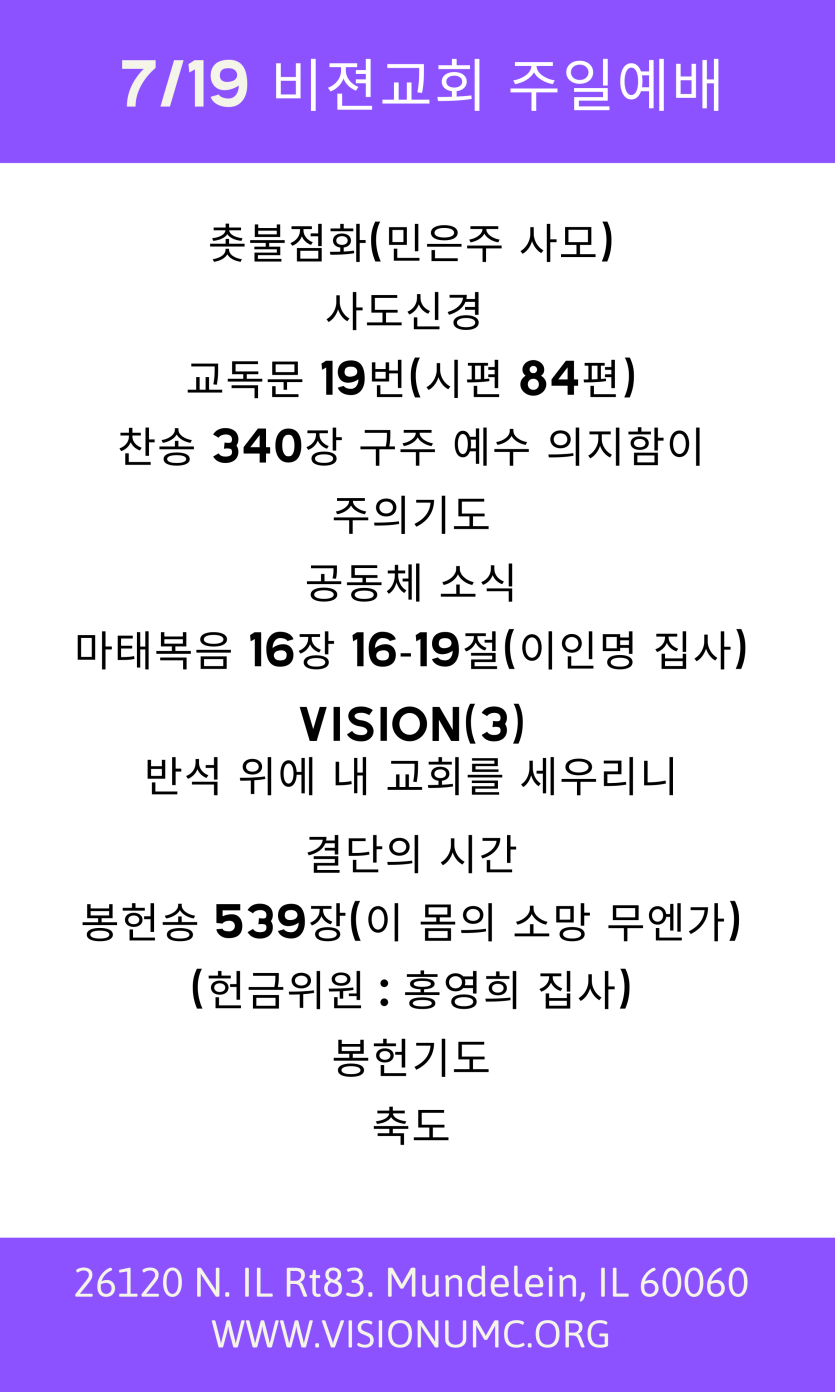 7월 3주 페이지 정보 작성자 VisionChurch 댓글 0건 조회 2,658회 작성일 20-08-08 12:48 목록 본문 7월 19일 첨부파일 7 19 2020.pdf (1.2M) 0회 다운로드 | DATE : 2020-08-08 12:48:52 이전글7월 4주 20.08.08 다음글7월 2주 20.08.08 댓글 0 댓글목록 등록된 댓글이 없습니다.
