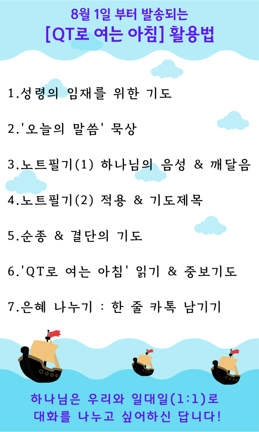 [QT로 여는 아침] 활용법 페이지 정보 작성자 VisionChurch 댓글 0건 조회 11,270회 작성일 20-08-08 13:49 목록 본문 하나님은 우리와 일대일(1:1)로 대화를 나누고 싶어하신 답니다! 이전글[큐티로 여는 아침]을 시작하기 전에 드리는 당부의 말씀 20.08.08 다음글QT(경건의 시간)를 위한 준비물 20.08.08 댓글 0 댓글목록 등록된 댓글이 없습니다.